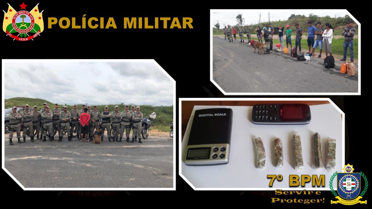 Com a ajuda de cão farejador em operação na Estrada de Feijó (BR 364), a Polícia Militar localizou cinco tabletes de maconha na bagagem de um homem identificado com as iniciais de E. F. S. K., que foi detido.