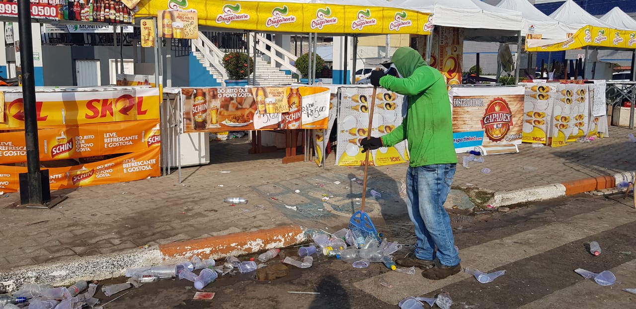 Os garis e servidores da Prefeitura de Cruzeiro do Sul tiveram muito trabalho pela manhã e têm feito um trabalho de excelência. Contudo, quem visita a feira precisa compreender que lugar de lixo é no lixo e não chão.