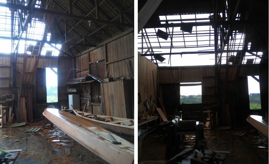 A forte ventania da tarde desta quinta-feira, 12, em Cruzeiro do Sul, destelhou o Polo Naval da cidade, localizado nas margens do Rio Juruá.
