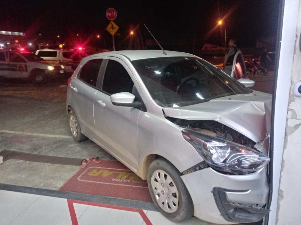 O veículo desgovernado só parou ao colidir com a parede de uma drogaria.