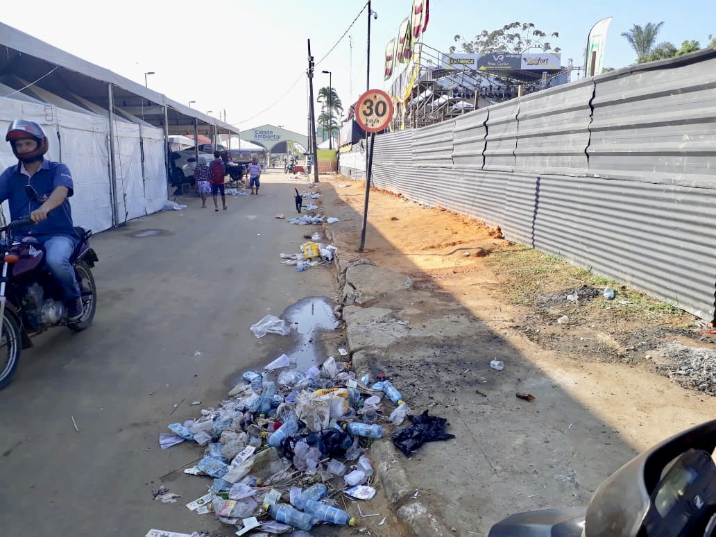 Mesmo com diversas lixeiras espalhadas ao longo da Avenida Mâncio Lima, o rastro de lixo deixado pelo público na última noite de Expoacre Juruá incomodou os moradores das redondezas. o evento encerrou na noite de domingo, 1.