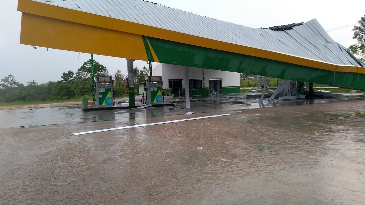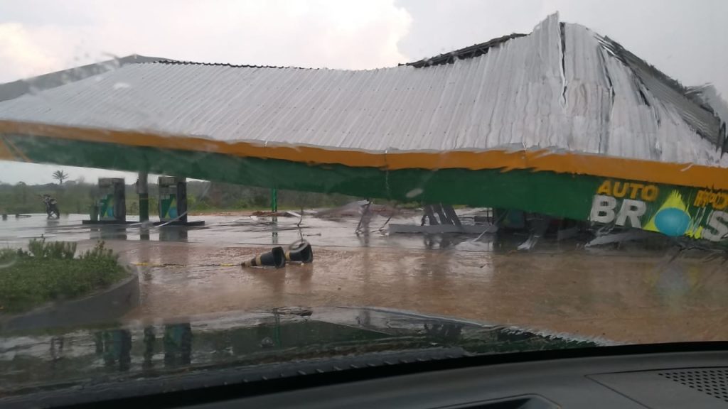 Uma forte chuva atingiu o município Amazonense do Guajará na tarde desta quinta-feira, 19, e causou estragos. Parte da estrutura do primeiro posto de gasolina, construído na cidade, despencou em cima das bombas de combustíveis e veículos.