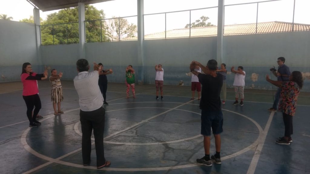 Pensando no bem estar dos idosos, o Núcleo de Apoio à Saúde da Família (Nasf) realiza semanalmente, atividades voltadas para esse público, entre ela está o Grupo de Práticas Corporais, em que os idosos fazem ginástica, na Quadra do Aeroporto Velho.