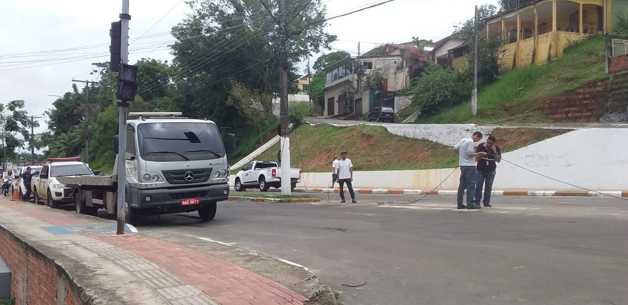 “Umm caminhão acima da altura permitida quebrou a fiação do semáforo e de telecomunicação. Teremos que trocar toda a fiação”, explica o representante do Detran, Anderson Castro.