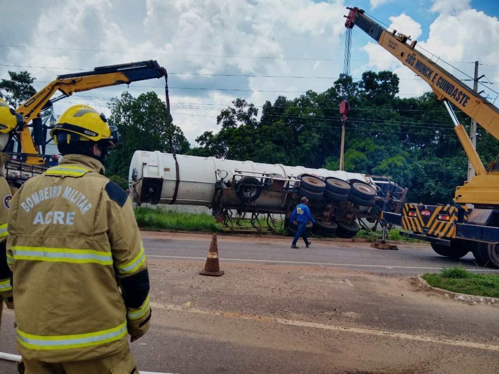 Um caminhão que transportava 40 mil litros de diesel tombou no quilômetro 20 da BR-364, no município de Bujari na manhã dessa quarta-feira (9). Uma equipe do Corpo de Bombeiros foi acionada para realizar intervenção de cautela.