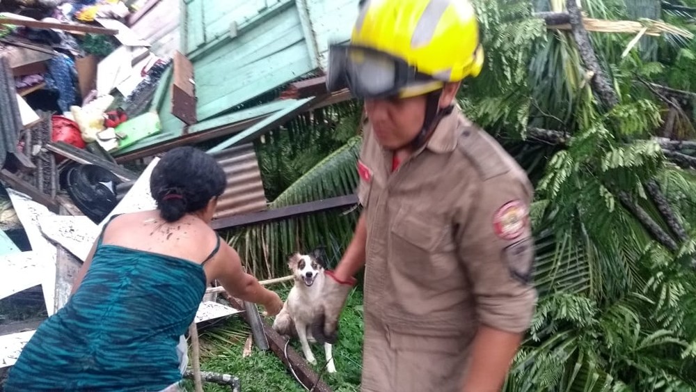 “Não estava esperando e quando foi do nada só vi o claridade e o barulho. Senti a batida das telhas na minha cabeça. Por sorte, a árvore não caiu em mim diretamente. Fiquei com muito medo e tive medo também de perder meus cachorros que estavam comigo”, disse Raquel.