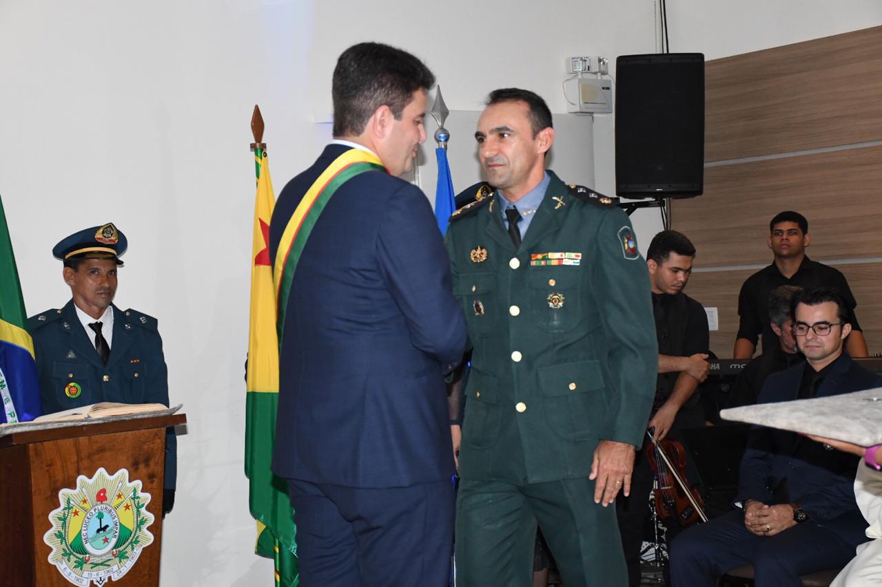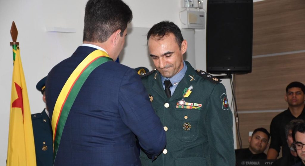 O comandante da Polícia Militar em Cruzeiro do Sul, o major Evandro, e a aluna sargento Arlange, receberam a Ordem da Estrela do Acre do Governo do Estado.