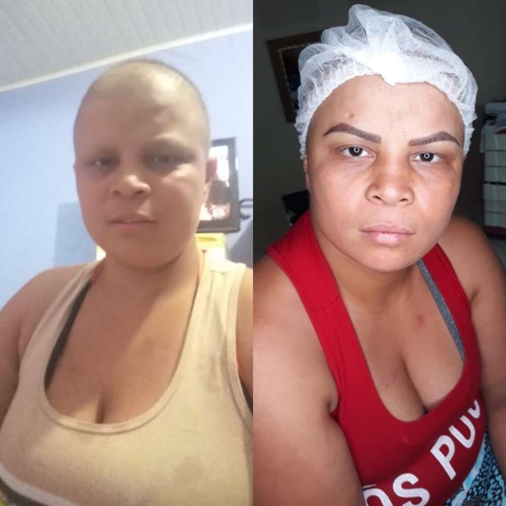 “Minha autoestima melhorou bastante, porque a gente perde cabelo e sobrancelha. Não tinha coragem nem de me olhar no espelho. Me sentia feia, de baixo astral, não gostava de sair na rua. E ela [Halyne] ligou para mim e disse que faria minha sobrancelha gratuitamente e, quando cheguei lá, ela me atendeu super bem, um amor de pessoa. Muito preocupada se eu estava sentindo dor ou não”, relembra.