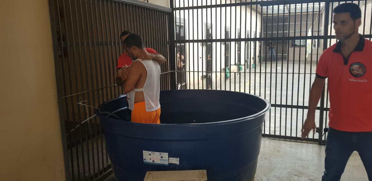 POR SANDRA ASSUNÇÃO – Nesta sexta-feira, 18, 42 detentos do Complexo Penitenciário do Juruá, em Cruzeiro do Sul, foram batizados como membros de uma igreja evangélica e deixaram as facções a que pertencia. O ingresso nas igrejas evangélicas e saída do mundo do crime, é a única forma dos faccionados se desligarem das facções e seguirem vivos.