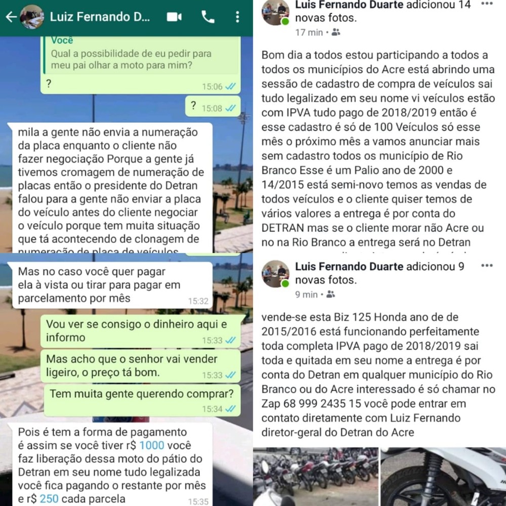 Estelionatários estão usando perfis falsos em redes sociais com o nome o presidente do Departamento Estadual de Trânsito do Acre (Detran-AC), Luiz Fernando Duarte, anunciando a venda de veículos apreendidos em operações do órgão. Além disso, o perfil ainda oferece a remoção de multas e taxas.
