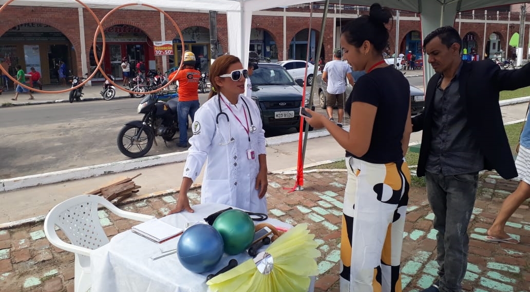“Hoje é o terceiro dia que estamos realizando atendimentos, aferição de pressão e demonstração de algumas das atividades físicas que a gente desenvolve na área de fisioterapia”, destacou Lúcia.