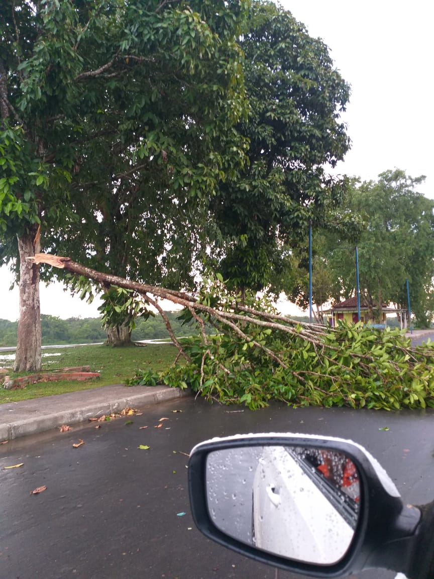 No primeiro caso, parte de uma árvore, que fica no centro do município, foi derrubada com a forte ventania.
