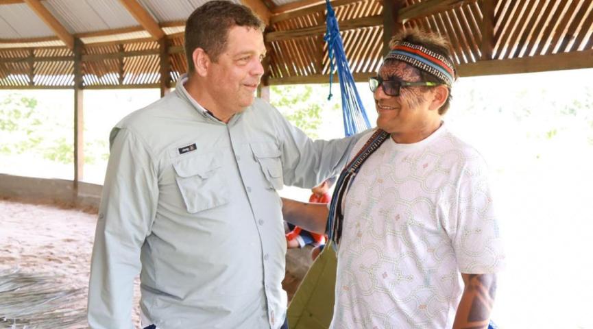 O governador em exercício, Major Rocha, participou da abertura do evento indígena neste final de semana, na Aldeia Sagrada do povo Yawanawa, no município de Tarauacá. Ele foi recebido às margens do rio Gregório pelo Cacique Biraci Brasil, que comemorou a presença de um representante da nova gestão estadual num momento de importante celebração cultural de sua etnia.