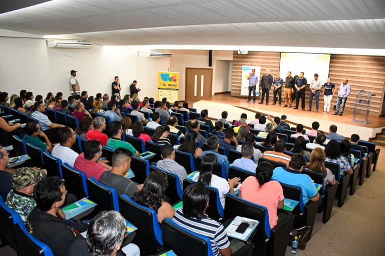Prefeitos, presidentes de câmaras municipais, secretários municipais e demais gestores participam em Cruzeiro do Sul, do Ciclo de Debates do Tribunal de Contas no Municípios, no auditório do Senac.