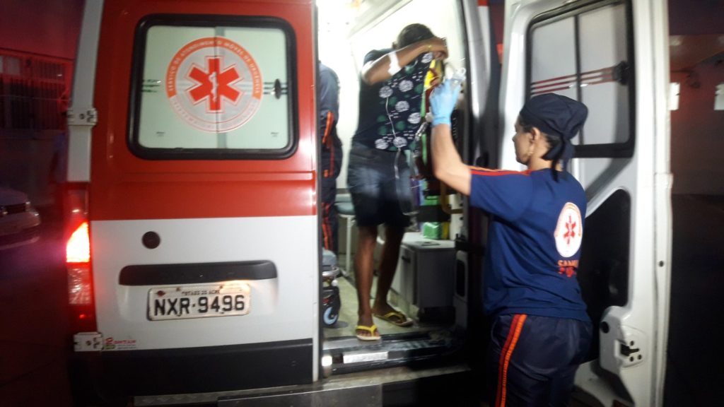 Populares que passavam pelo local ao verem o jovem ferido o colocaram em um carro que seguiu a caminho do hospital. A ambulância 01 do Samu foi acionada e interceptou o veículo em frente ao Parque de Exposições, na Vila Acre. Os paramédicos prestaram os primeiros atendimentos e conduziu a vítima ao Pronto-Socorro de Rio Branco em estado de saúde estável.
