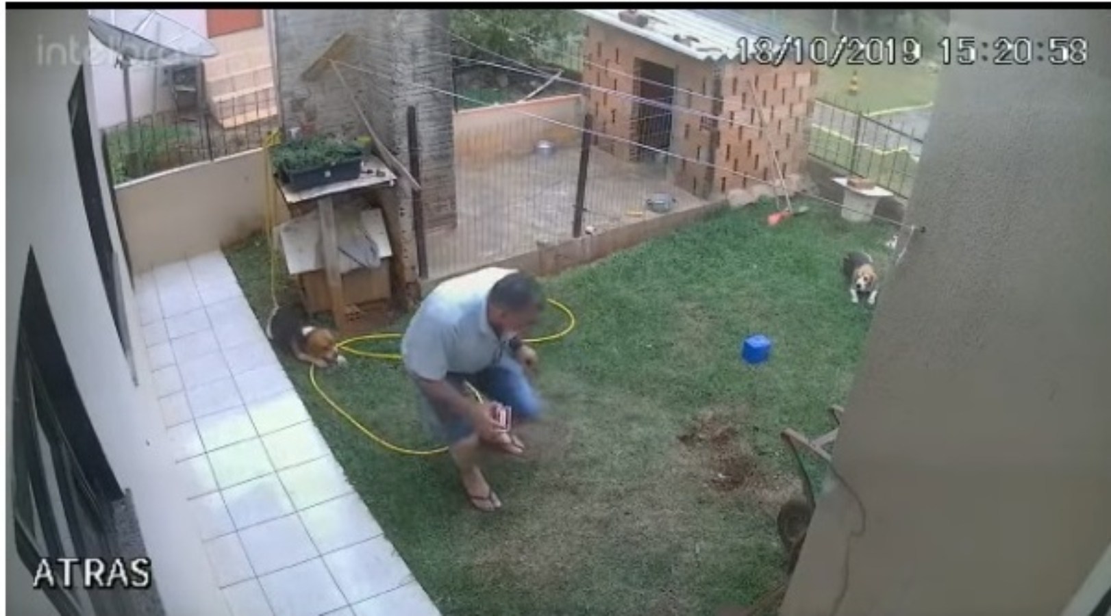 Um homem explodiu o quintal de casa ao tentar matar baratas com gasolina, veneno em spray e fogo, em Enéas Marques, no sudoeste do Paraná. As câmeras de monitoramento da casa registraram o acidente.