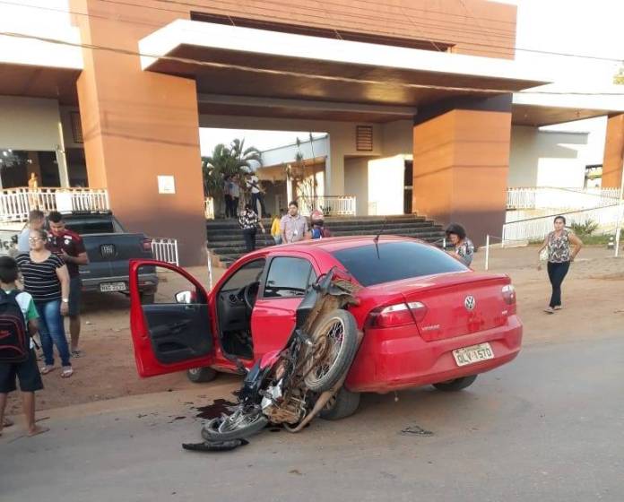 Jaqueline foi lançada no asfalto após o impacto da moto contra o carro modelo VW, placas QLV 1570. A moto modelo Yamaha teve a sua parte frontal destruída ficando praticamente encima do veículo.