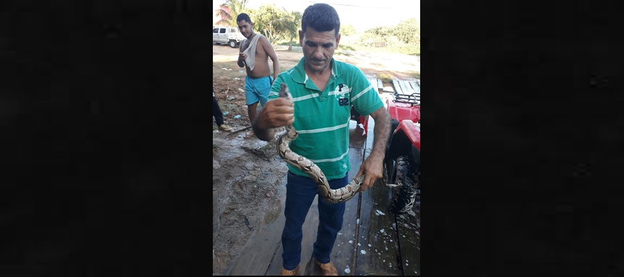 Em seguida, um morador captura o animal que é transportado para uma área de mato, seu habitat natural. Antes de ser encontrada a cobra ainda pegou uma carona pelo proprietário do quadriciclo que não sabia da presença da mesma em seu veículo.