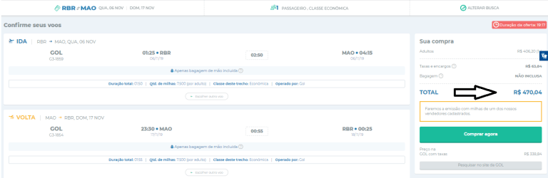 Nos voos diretos da Gol de Rio Branco para Manaus a nossa equipe encontrou passagens de ida e volta por R$ 470,04. (Confira na imagem abaixo). As opções de voos sem escalas entre as duas capitais são às quartas, sábados e domingos. Os passageiros do Acre podem aproveitar essa promoção para viajar para o exterior através do Amazonas. O Aeroporto de Manaus tem mais opções de passagens aéreas baratas por ter mais companhias operando.