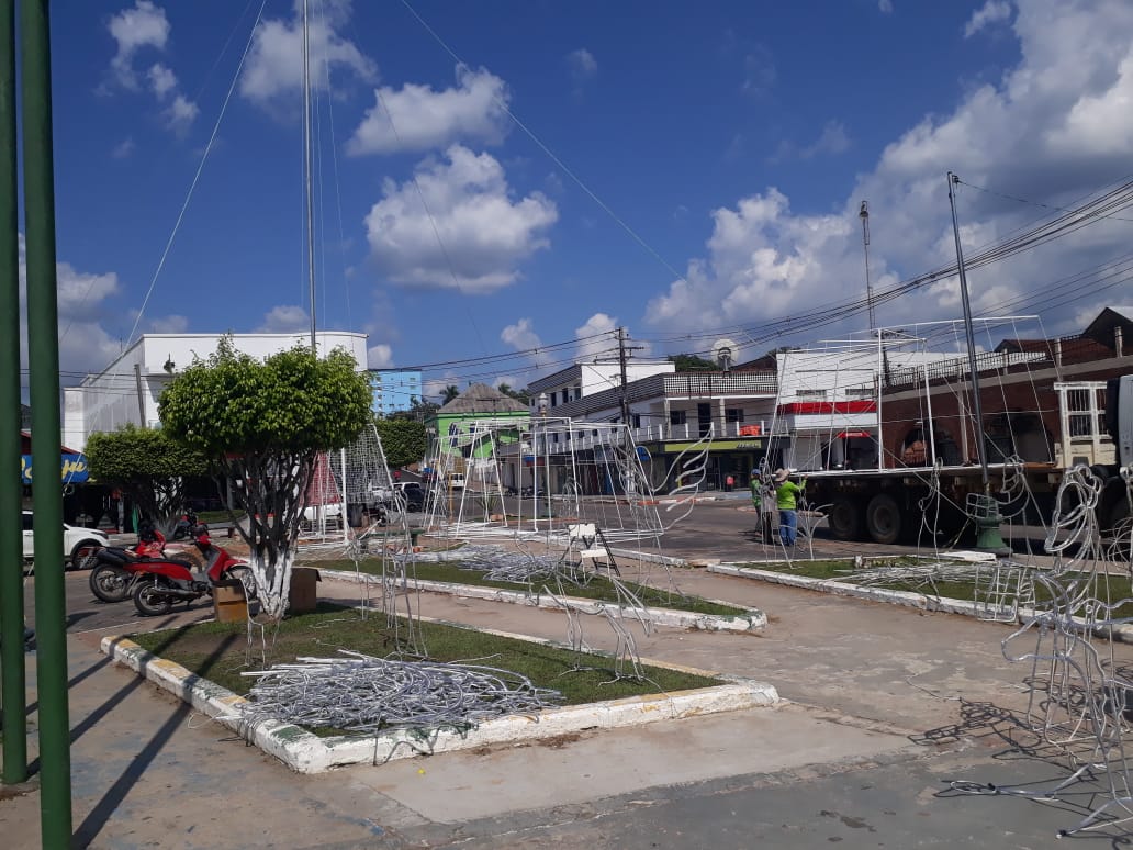 A novidade para este é que a Avenida Coronel Mâncio Lima também será decora para o Natal. Uma vila, onde ficará o Papai Noel, está sendo construída para a alegria da criançada.