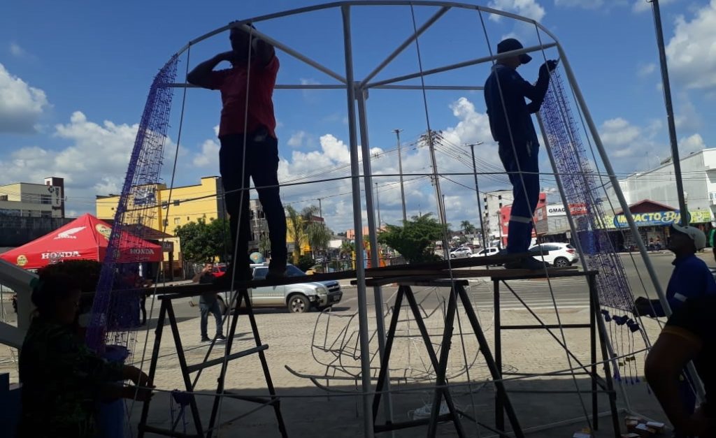 Árvore de Natal gigante está sendo montada no Centro de Cruzeiro do Sul