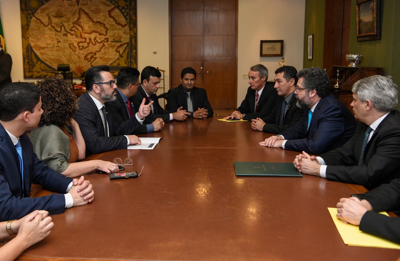 Nesta terça-feira, 12, em reunião com o Ministro Ernesto Araújo, a Bancada Federal do Acre solicitou apoio aos estudantes brasileiros que residem na Bolívia. Estiveram presentes os deputados Alan Rick (DEM), Jesus Sérgio (PDT), Perpétua Almeida (PCdoB) e Manuel Marcos (PRB). Alan Rick levou os representantes dos médicos brasileiros formados no exterior Dr. Flávio Lima Barreto, Dra. Maria Roseli de Sousa e Pr. Suelismar Caetano.