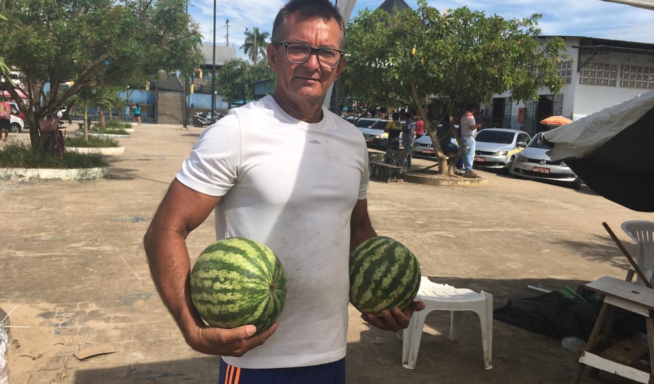 “As melancias estavam custando de R$ 15 a R$ 20, mas hoje estão por esse preço. Tem que vir e aproveitar por que está muito barato. E eu garanto a qualidade da melancia”, disse.