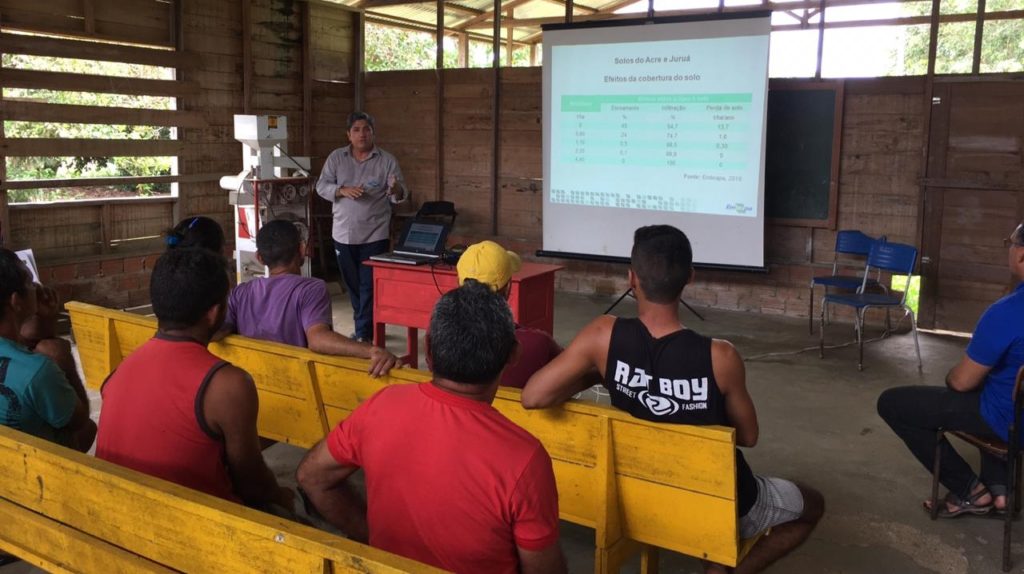 Com o tema “manejo conservacionista do solo arenoso do Juruá”, o curso apresentou técnicas de recuperação, reconstrução e construção de fertilidade dos solos agrícolas. “O manejo conservacionista busca condições que o solo consiga produzir sempre e na mesma área, colaborando com a redução da pressão sobre a floresta e do desmatamento”, frisou o pesquisador da Embrapa no Acre, Enir de Souza Costa.
