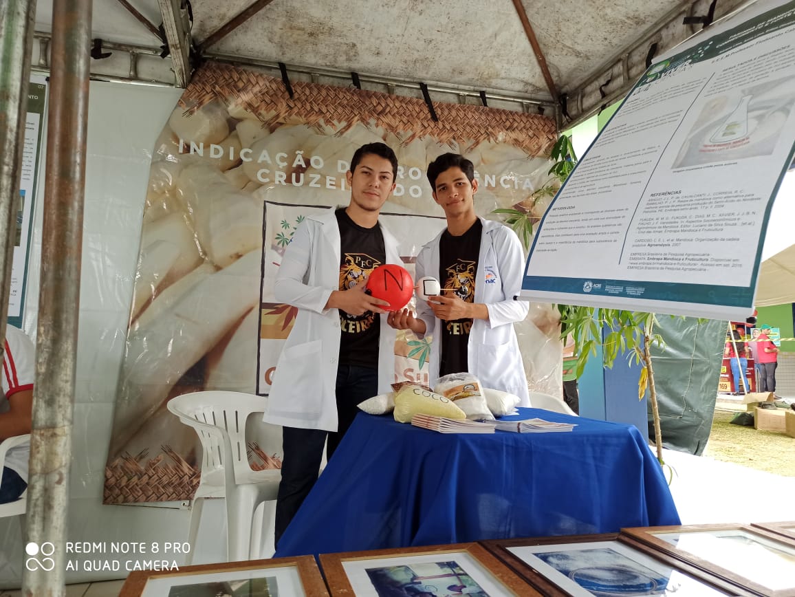 Já o grupo de Wenderson David, 18 anos, desenvolveu uma experiência com a tradicional farinha de mandioca de Cruzeiro do Sul.