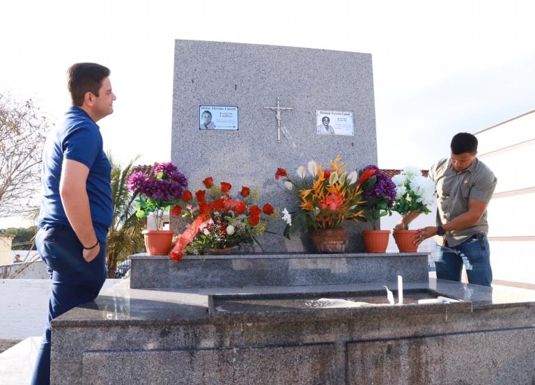 Do aeroporto, o governador Gladson Cameli foi direto para o Cemitério Jardim da Paz, em Cruzeiro do Sul, onde colocou flores no túmulo do tio, o ex-governador Orleir Cameli.