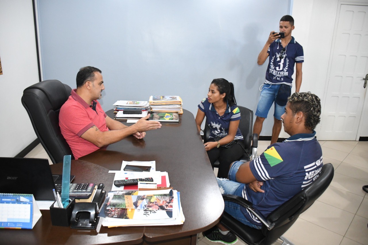 Os jovens buscaram o gestor para conhecer um pouco sobre a dinâmica de trabalho de um prefeito e entender como se faz uma boa política, voltada para o benefício da população.