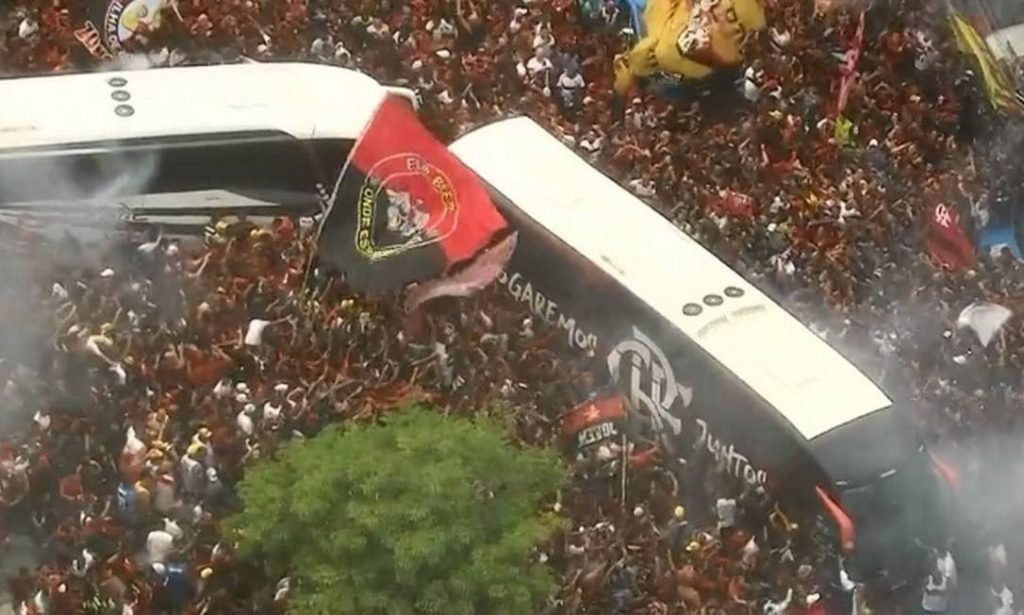 A festa começou cedo no Rio de Janeiro. Os torcedores começaram a se aglomerar na porta do Ninho a partir das 9h, horário da última atividade do Flamengo no Brasil antes do embarque. De acordo com a Polícia Militar, cerca de dez mil pessoas estavam reunidas no momento da saída do ônibus rumo ao Galeão.