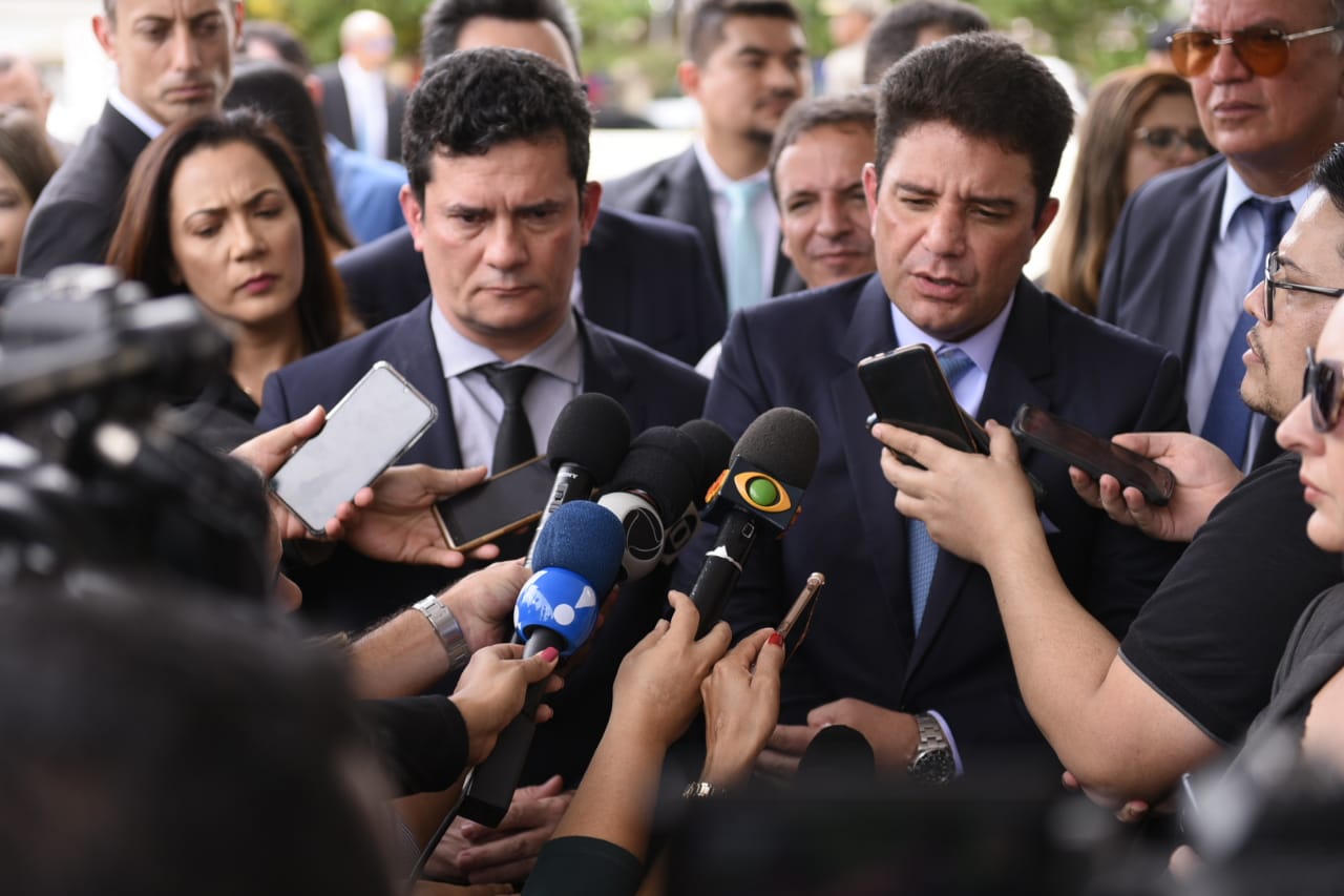 Em visita ao Acre nesta segunda-feira, 18, para uma série de importantes anúncios na área de segurança pública, o ministro da Justiça e Segurança Pública, Sérgio Moro, realizou uma entrevista coletiva na frente do Palácio Rio Branco, onde ao lado do governador Gladson Cameli, destacou a importância de investimentos no setor principalmente pelo estado ser região de fronteira.