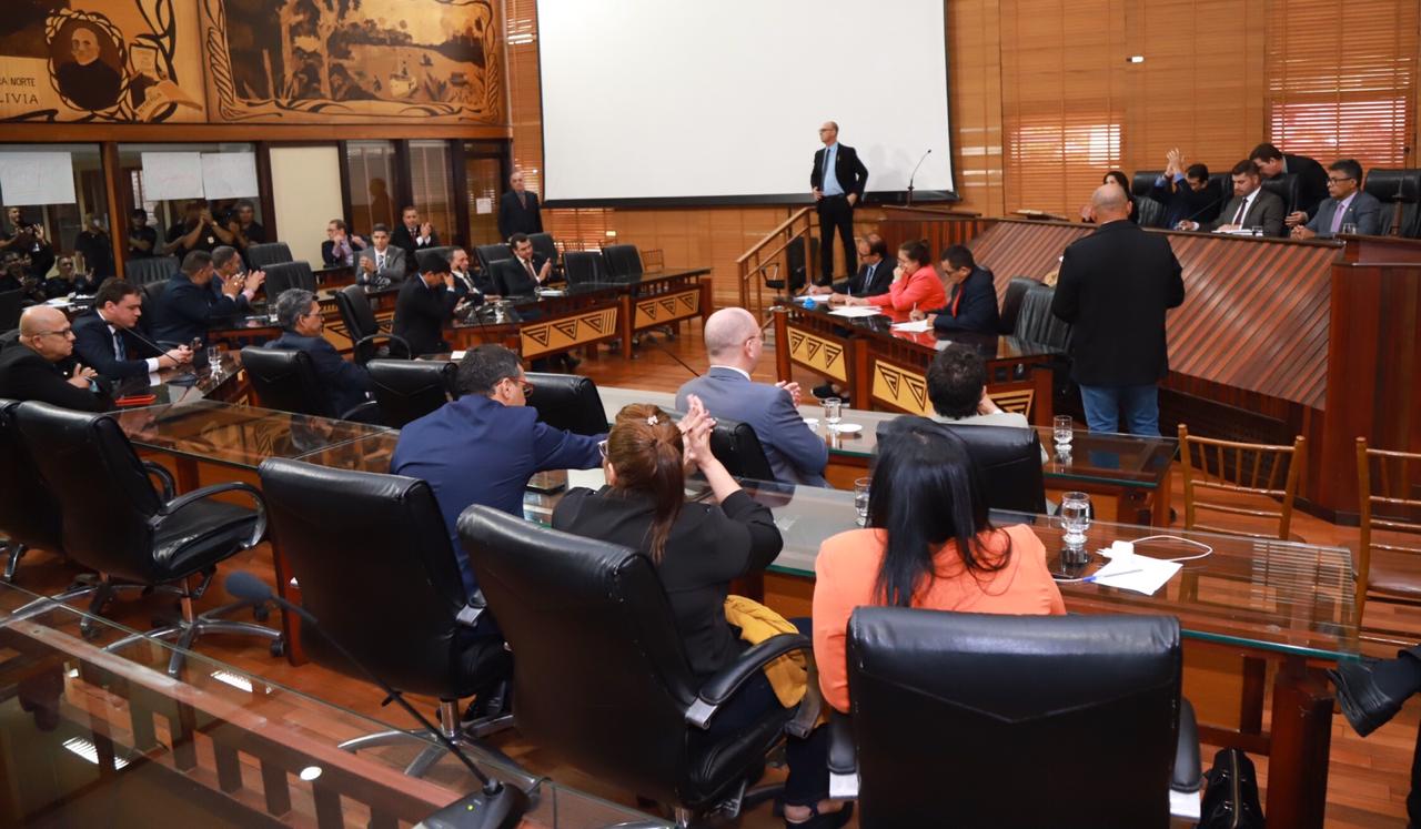 A última sessão deliberativa da Assembleia Legislativa, nesta quinta, 12, limpou a pauta de projetos do exercício de 2019, entre eles três de interesse do Governo do Acre. A autorização de realizar crédito financeiro pela atual gestão com a Caixa Econômica Federal, a criação da Secretaria de Estado de Desenvolvimento Urbano (Sedur) em substituição à atual Secretaria de Relações Políticas e Institucionais (SRPI), que será extinta, e o ingresso da Polícia Penal (ex-agentes penitenciários) como mais uma força de segurança com a profissão reconhecida pelo artigo 144 da Constituição Federal.