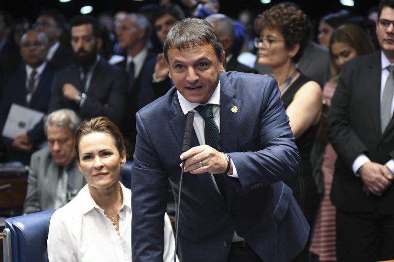 Solenidade de posse dos senadores durante primeira reunião preparatória para 56ª Legislatura. Senador Márcio Bittar (MDB-AC) faz juramento. Foto: Jefferson Rudy/Agência Senado