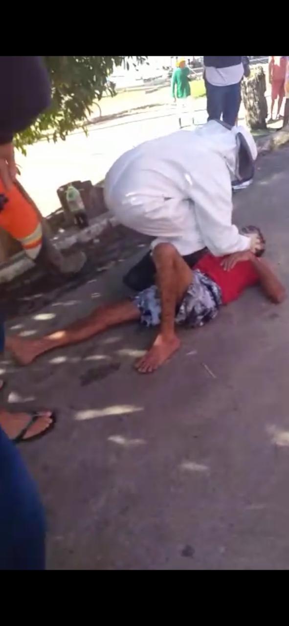 Ao ser conduzido para o Hospital a vítima teve uma parada respiratória e rapidamente foi reanimado pelos bombeiros.