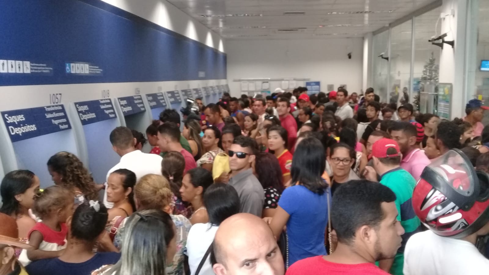 A quantidade de pagamentos liberados faz as agências ficarem super lotadas. Mas o banco esclarece que o atendido será estendido até as 14h para que toda a demanda seja atendida.