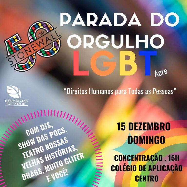 A Parada do Orgulho LGBT acontecerá em Rio Branco no domingo, 15 de dezembro, com concentração a partir das 15 horas em frente ao Colégio de Aplicação da UFAC, no Centro.