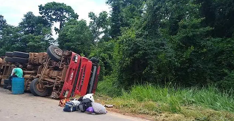 Na tarde da última terça-feira, 28, uma carreta que transportava castanha acabou tombando na estrada de Sena Madureira, na altura do km 35, interior do Acre.