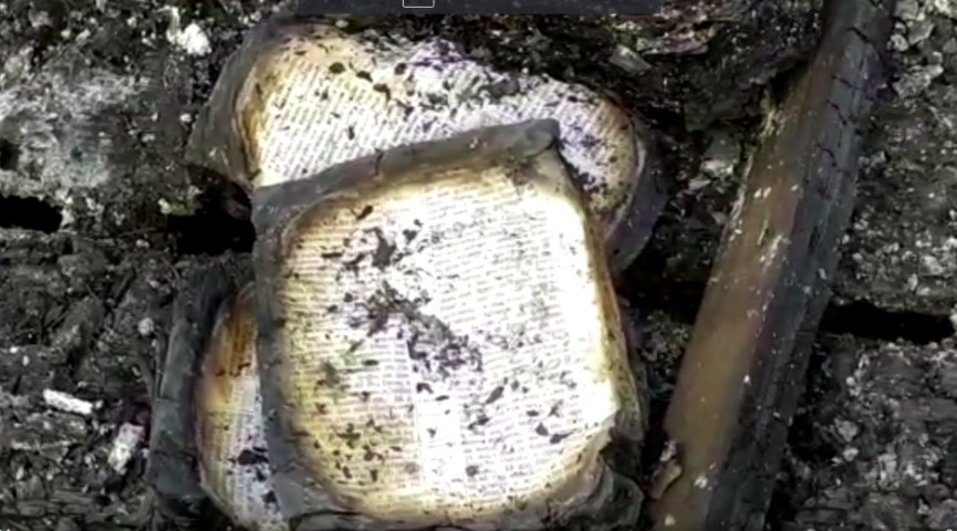 A reportagem esteve no local fazendo imagens, e também verificou que somente as pontas da Bíblia ficaram queimadas e que o resto do livro sagrado continuou intacto.
