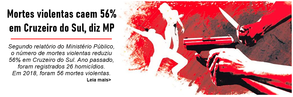 Segundo relatório do Ministério Público, o número de mortes violentas reduziu 56% em Cruzeiro do Sul. Ano passado, foram registrados 26 homicídios. Em 2018, foram 56 mortes violentas.