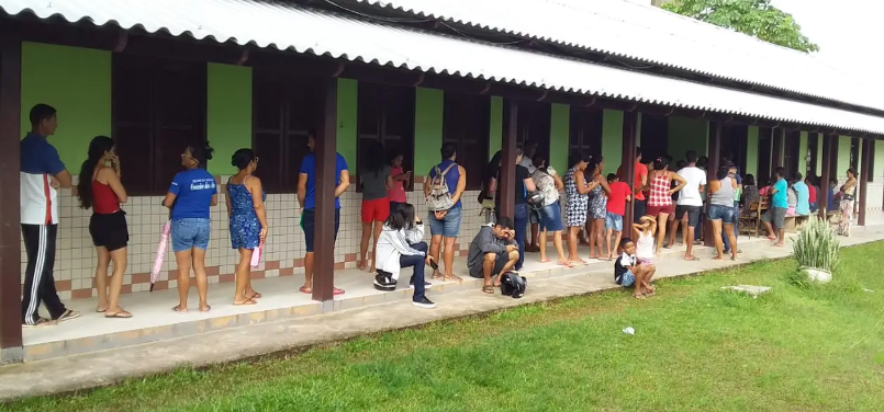 Uma enorme fila se formou, nesta segunda-feira, 13, em frente a Escola Madre Adelgundes Becker, no bairro Miritizal, em Cruzeiro do Sul. A instituição é a segunda escola militar da cidade.