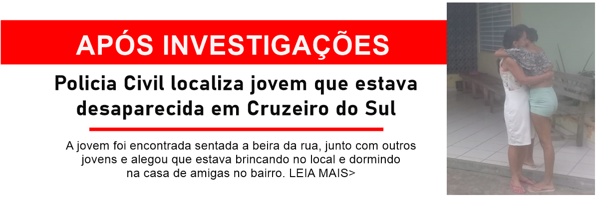 Agentes da Delegacia de Proteção a Mulher de Cruzeiro do Sul (DEAM), após mais de 5 dias de investigações, conseguiram encontrar a jovem TAINARA DA CRUZ, 14 anos, que estava desaparecida desde a noite do último sábado (08/02/2020), a jovem estava na companhia de amigos no bairro São José, em Cruzeiro do Sul/AC.