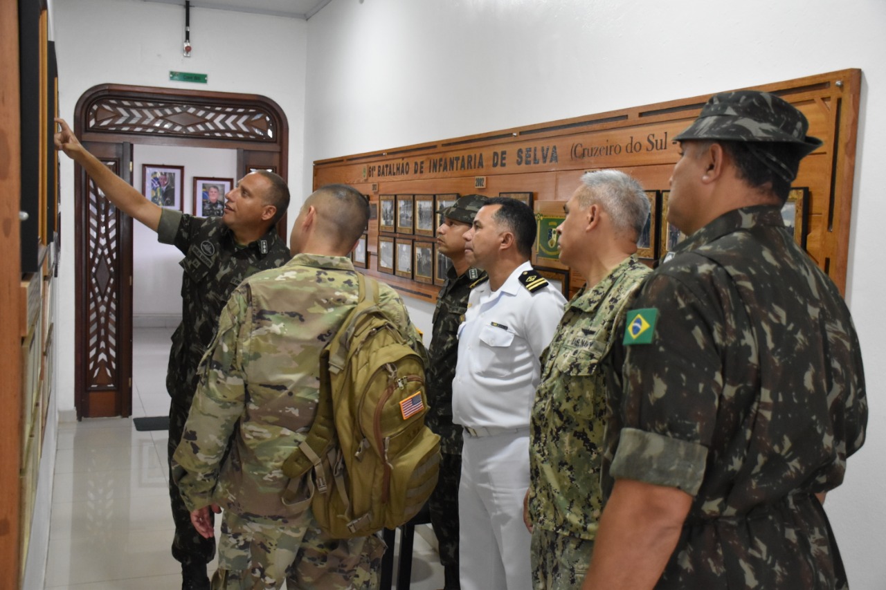 Entre os dias 04 e 06 de fevereiro, o Comando de Fronteira Juruá/61º Batalhão de Infantaria de Selva (C FRON JURUÁ/61º BIS) recebeu a visita de uma comitiva de adidos militares das Forças Armadas dos Estados Unidos da América (EUA). A visita teve como propósito conhecer as peculiaridades do CFron JURUÁ, da Guarnição de Cruzeiro do Sul e realizar visitas de cortesia com os comandantes militares da Guarnição, renovando os laços de amizade e cooperação entre os Exércitos dos EUA e Brasil e, ainda, reforçando as Relações Institucionais do Batalhão Marechal Taumaturgo de Azevedo.