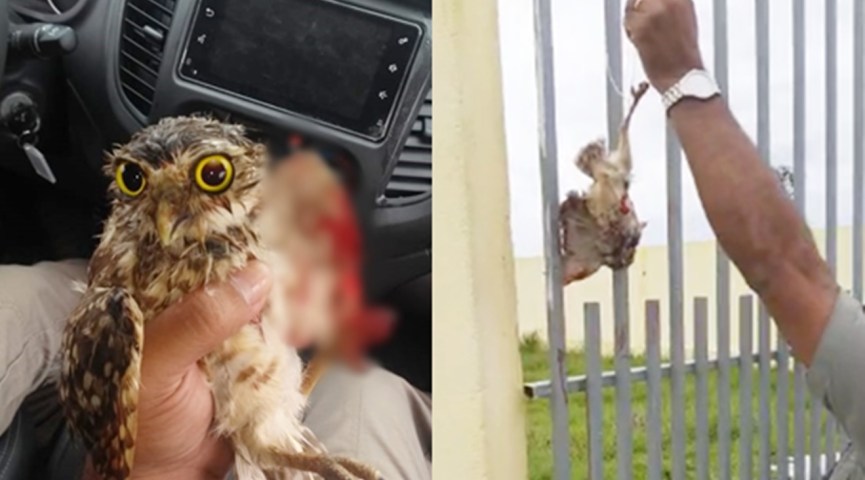 Policiais militares do 2º Batalhão resgataram nesta terça-feira (11) um filhote de coruja que estava amarrado com um fio de nailon de cabeça pra baixo na grade de uma escola na Cidade do Povo. O animal teve a asa cortada e sangrava no momento do resgate.