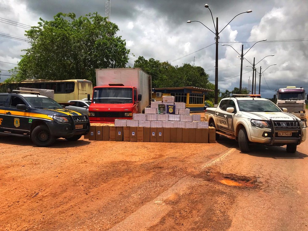 O flagrante ocorreu no Trevo de Senador Guiomard, na BR-317, interior do Acre. O motorista teria dito que fazia uma mudança. Ao verificarem o baú do caminhão, os policiais acharam os cigarros.