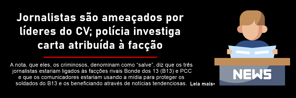Um suposto aviso, em tom ameaçador, atribuído à facção Comando Vermelho (CV), foi divulgado na noite de quinta-feira (7) contendo ameaças a 2 jornalistas e um comunicador de redes sociais. A nota, que eles, os criminosos, denominam como “salve”, diz que os três jornalistas estariam ligados às facções rivais Bonde dos 13 (B13) e PCC e que os comunicadores estariam usando a mídia para proteger os soldados do B13 e os beneficiando através de notícias tendenciosas.