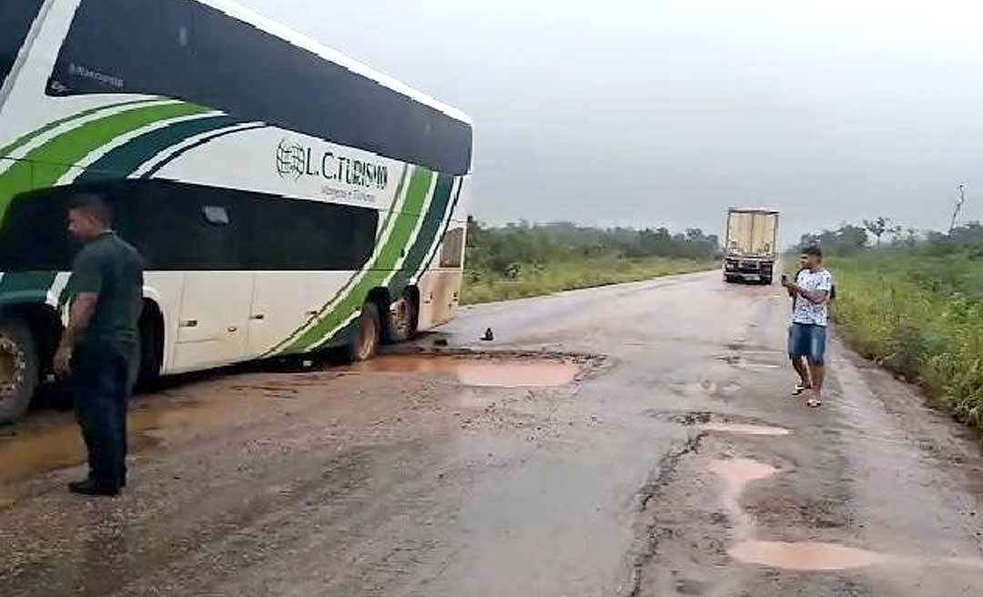 Um internauta revoltado com a situação da rodovia gravou um vídeo no local em que o ônibus está atolado. Ele conta que há buracos ao longo de 70 quilômetros da via, o que tem dificultado bastante o tráfego.