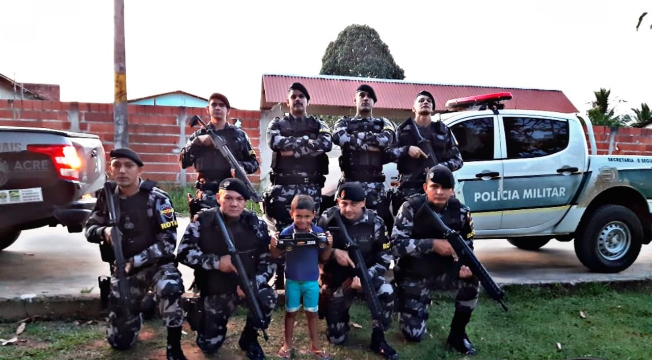 O pequeno Gabriel, de apenas 7 anos, sonha em ser policial militar. Segundo os pais do menino, a paixão pela polícia nasceu quando ele ainda tinha 3 anos de idade. A família mora no bairro Miritizal.