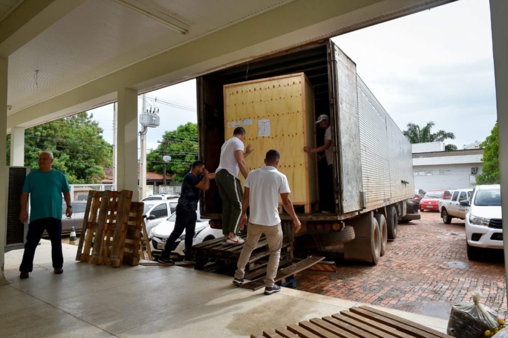 Uma a uma e com a ajuda de alguns braços, foram descarregadas 12 câmaras refrigeradas que fazem parte de um projeto para a modernização do sistema de refrigeração da rede de frios do Estado. De acordo com a coordenadora do Núcleo de Imunização, Renata Quiles, a modernização desse sistema irá permitir maior qualidade de conservação das vacinas.